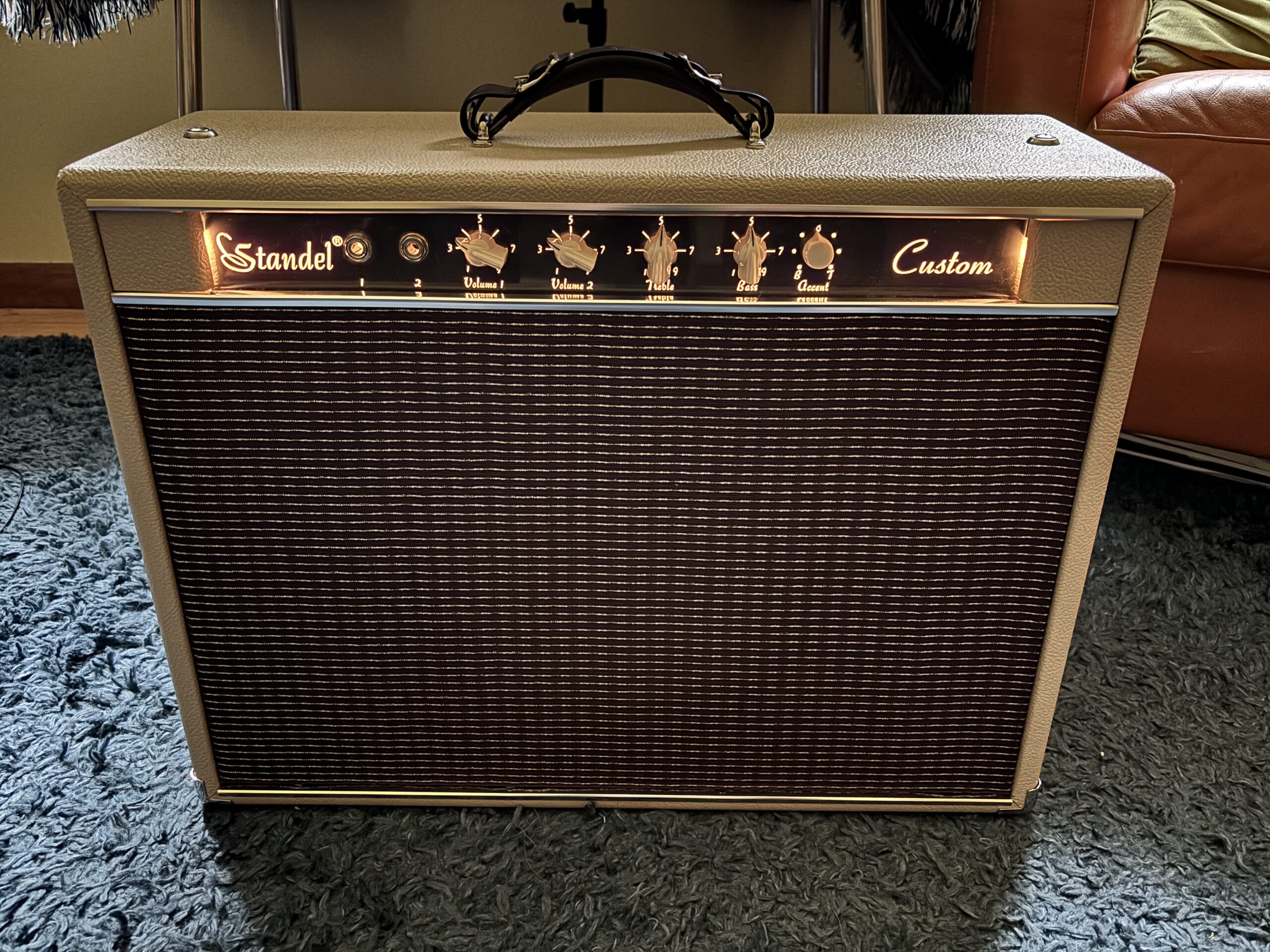 The 50J12 delivers rich harmonics and thick, twangy cleans. There is a bite to the attack of this amp that sets it apart from the other Standels, and it breaks up earlier than our other models. It’s a perfect match for any guitar or steel guitar we’ve plugged into it.